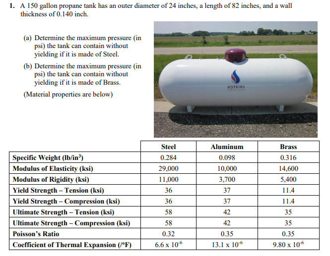 Solved 1 A 150 Gallon Propane Tank Has An Outer Diameter Of Chegg Com